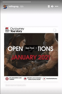 Los rumores sobre la asociación de Clark con Santa Monica Studios comenzaron durante el fin de semana, cuando Roger compartió una historia de Instagram señalando algunas aperturas dentro del estudio.