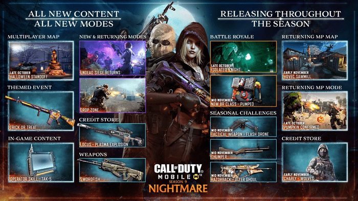¿Qué se incluye en el COD: notas del parche de la temporada 9 móvil? COD: Mobile Season 9 se lanzó ayer, y el desarrollador ahora ha publicado las notas oficiales del parche. El COD: Mobile Season 9 con temática de Halloween traerá de vuelta algunos de los modos de juego más aterradores para que los jugadores disfruten. La temporada anterior estableció un meta de armas que podría cambiar gradualmente una vez que comience la temporada 9.