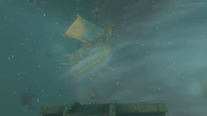Verás un NPC una vez que llegues a Gerudo Valley Skyview Tower. Están luchando para abrir las puertas debido a que necesitan que los levanten, pero no pueden encontrar la manera de hacerlo. Afortunadamente, puede usar la nueva habilidad Ultrahand de Links para unir cajas de metal al contrapeso del elevador. Esto llevará al NPC a la cima.