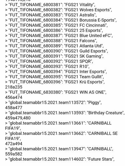 Como podemos ver en la captura de pantalla anterior, en la parte inferior de la lista podemos ver la codificación agregada para los activos de Carniball, junto con los activos de Future Stars que obviamente se lanzaron durante la semana pasada.