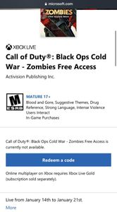 ModernWarzone ha publicado la siguiente imagen que muestra una lista en la tienda Xbox titulada ‘Call of Duty: Black Ops Cold War – Zombies Free Access’