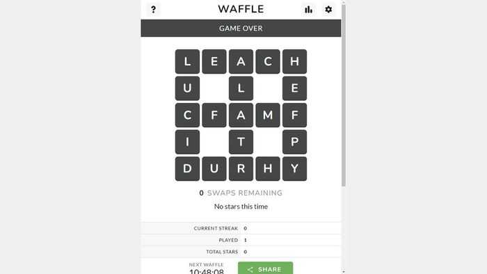 ¡Puedes jugar Waffle en su sitio web! La premisa del juego es resolver el Waffle en 15 intercambios o menos. Puede hacer clic y arrastrar las letras a cualquier parte del tablero. Verde significa que ya están en el lugar correcto y amarillo significa que pertenecen a algún lugar de esa palabra, ya sea vertical u horizontalmente según la ubicación. Si está en la esquina, significa que puede estar en cualquier palabra. Cada Waffle tiene el potencial de ser resuelto en diez movimientos.